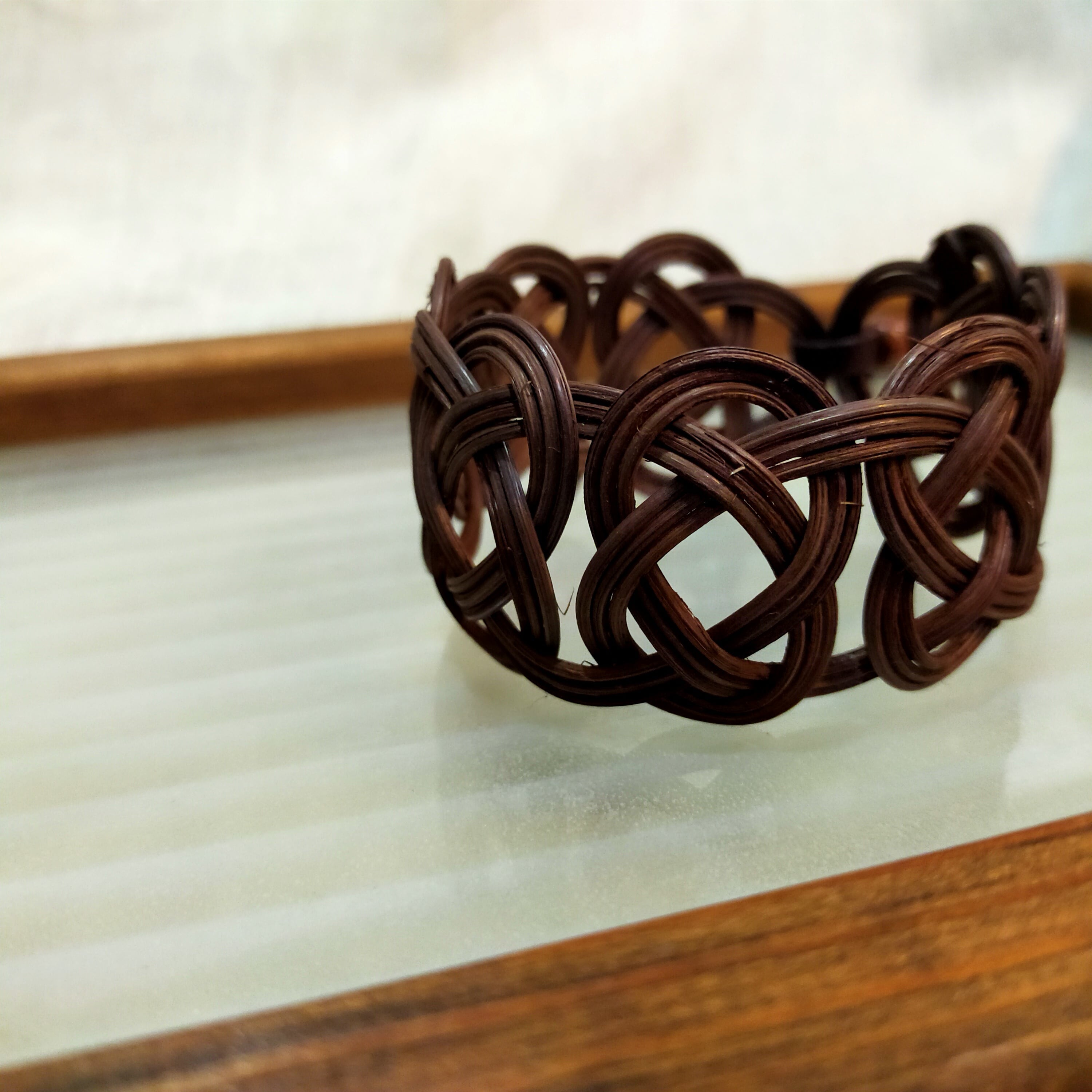 細いラタンでバングルを編みました。